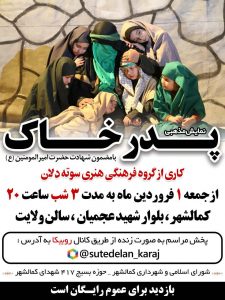 به گزارش خبرنگار پایگاه خبری دیده بان البرز، نمایش مذهبی پدر خاک با مضمون شهادت حضرت امیر المومنین (ع) کاری از گروه فرهنگی هنری سوته دلان، در لیالی پر فیض قدر از جمعه اول فروردین ماه به مدت سه شب در ساعت ۲۰ به روی صحنه می رود.